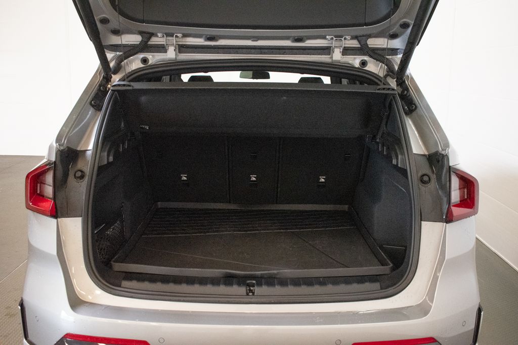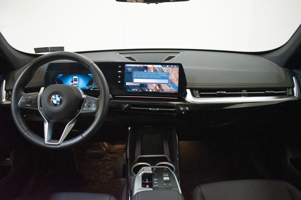 This X1 is well equipped with Convenience Package (Auto-Dimming Interior and Exterior Mirrors, Auto-Dimming Rear-View Mirror, BMW Digital Key Plus with UWB, Comfort Access Keyless Entry, Convenience Content 1, Panoramic Moonroof, and Wireless Device Charging), Driving Assistance Plus Package (ACC Stop and Go + Active Driving Assistant), 4-Wheel Disc Brakes, 7 Speakers, ABS brakes, Active Front Seats with Lumbar Support, Air Conditioning, Alloy wheels, AM/FM Radio, AM/FM radio: SiriusXM with 360L, Apple CarPlay and Android Auto Compatibility, Apple CarPlay Compatibility, Auto High-beam Headlights, Automatic temperature control, BMW Assist ECall, BMW TeleServices, Brake assist, Bumpers: body-color, Compass, Delay-off headlights, Driver door bin, Driver vanity mirror, Dual front impact airbags, Dual front side impact airbags, Electronic Stability Control, Emergency communication system: BMW Assist eCall, Exterior Parking Camera Rear, Four wheel independent suspension, Front anti-roll bar, Front Bucket Seats, Front Center Armrest w/Storage, Front dual zone A/C, Front reading lights, Heated door mirrors, Heated Front Seats, Heated front seats, Heated Steering Wheel, Illuminated entry, Knee airbag, Leather steering wheel, Low tire pressure warning, Memory seat, Navigation, Navigation System, Occupant sensing airbag, Outside temperature display, Overhead airbag, Overhead console, Panic alarm, Passenger door bin, Passenger vanity mirror, Perforated Veganza Upholstery, Personal ESIM 5G, Power door mirrors, Power driver seat, Power Front Seats, Power Liftgate, Power passenger seat, Power steering, Power windows, Radio data system, Rain sensing wipers, Rear anti-roll bar, Rear reading lights, Rear seat center armrest, Rear window defroster, Rear window wiper, Remote Engine Start, Remote keyless entry, Security system, SiriusXM with 360L and 1 Year Platinum Plan Subscription, Speed control, Speed-sensing steering, Speed-Sensitive Wipers, Split folding rear seat, Spoiler, Steering wheel mounted audio controls, Tachometer, Telescoping steering wheel, Tilt steering wheel, Traction control, Trip computer, Turn signal indicator mirrors, Universal Garage-Door Opener, Variably intermittent wipers, Wheels: 18" x 7.5" V-Spoke Bi-Color, and Widescreen Display.