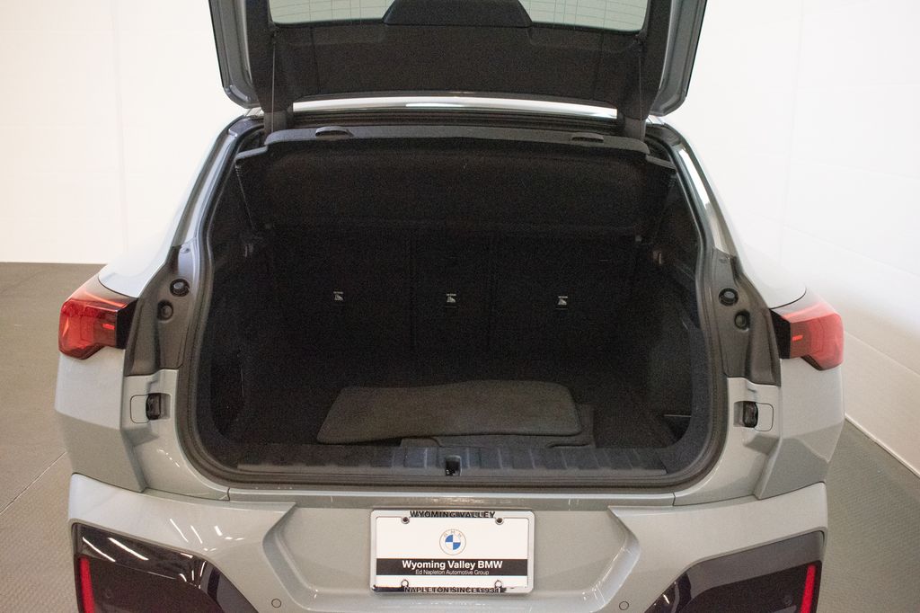 This X2 is well equipped with Driver Assistance Plus Package (ACC Stop & Go + Active Driving Assistant), Premium Package (Head-Up Display, Interior Camera, Live Cockpit Pro, Parking Assistant Plus, Premium Content 1, Sky Lounge Panoramic Roof, and Universal Garage-Door Opener), Navigation System, 12 Speakers, 4-Wheel Disc Brakes, ABS brakes, Active Front Seats w/Lumbar Support, Adaptive suspension, Air Conditioning, Alloy wheels, AM/FM Radio, AM/FM radio: SiriusXM, Apple CarPlay & Android Auto Compatibility, Auto High-beam Headlights, Auto-dimming door mirrors, Auto-dimming Rear-View mirror, Automatic temperature control, BMW Assist eCall, BMW TeleServices, Brake assist, Bumpers: body-color, Compass, Delay-off headlights, Driver door bin, Driver vanity mirror, Dual front impact airbags, Dual front side impact airbags, Electronic Stability Control, Emergency communication system: BMW Assist eCall, Exterior Parking Camera Rear, Four wheel independent suspension, Front anti-roll bar, Front Bucket Seats, Front Center Armrest, Front dual zone A/C, Front reading lights, Front Sport Bucket Seats, harman/kardon® Logic 7® Digital Surround, harman/kardon® Speakers, Heated door mirrors, Heated Front Seats, Heated front seats, Heated Steering Wheel, Illuminated entry, Knee airbag, Leather steering wheel, Low tire pressure warning, M Alcantara/Veganza Upholstery, Memory seat, Navigation, Occupant sensing airbag, Outside temperature display, Overhead airbag, Panic alarm, Passenger door bin, Passenger vanity mirror, Personal eSIM 5G, Power door mirrors, Power driver seat, Power Front Seats, Power Liftgate, Power passenger seat, Power steering, Power windows, Radio data system, Rain sensing wipers, Rear anti-roll bar, Rear reading lights, Rear seat center armrest, Rear window defroster, Rear window wiper, Remote Engine Start, Remote keyless entry, Security system, SiriusXM w/360L & 1 Yr Platinum Plan Subscription, Speed control, Speed-sensing steering, Speed-Sensitive Wipers, Split folding rear seat, Spoiler, Steering wheel mounted audio controls, Tachometer, Telescoping steering wheel, Tilt steering wheel, Traction control, Trip computer, Turn signal indicator mirrors, Variably intermittent wipers, Wheels: 20" x 8.0" M V Spoke Bicolor, and Widescreen Display.