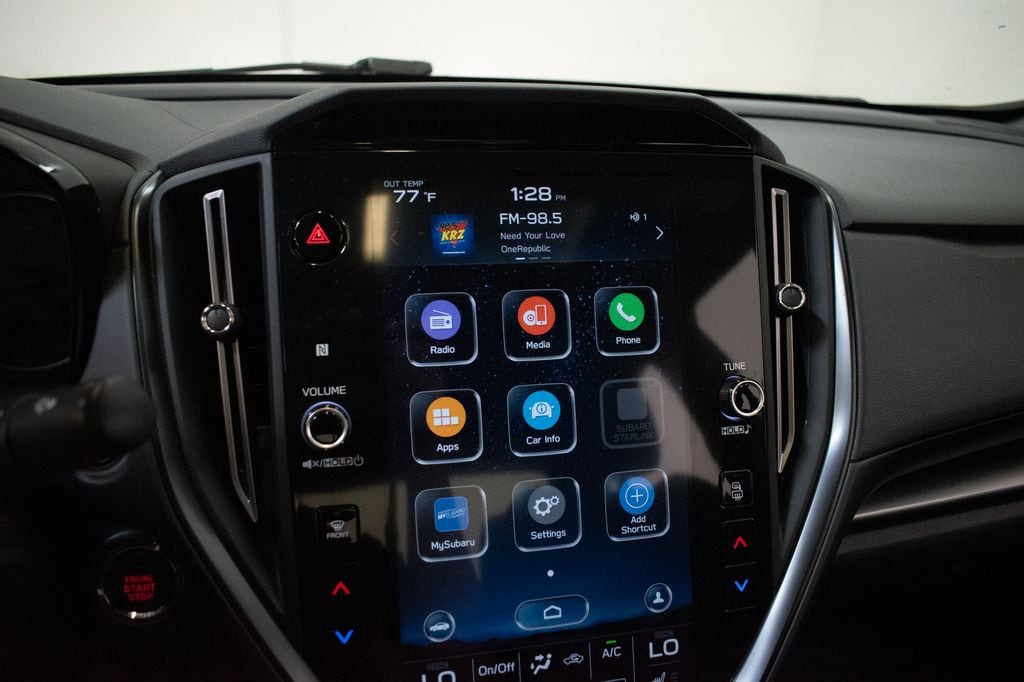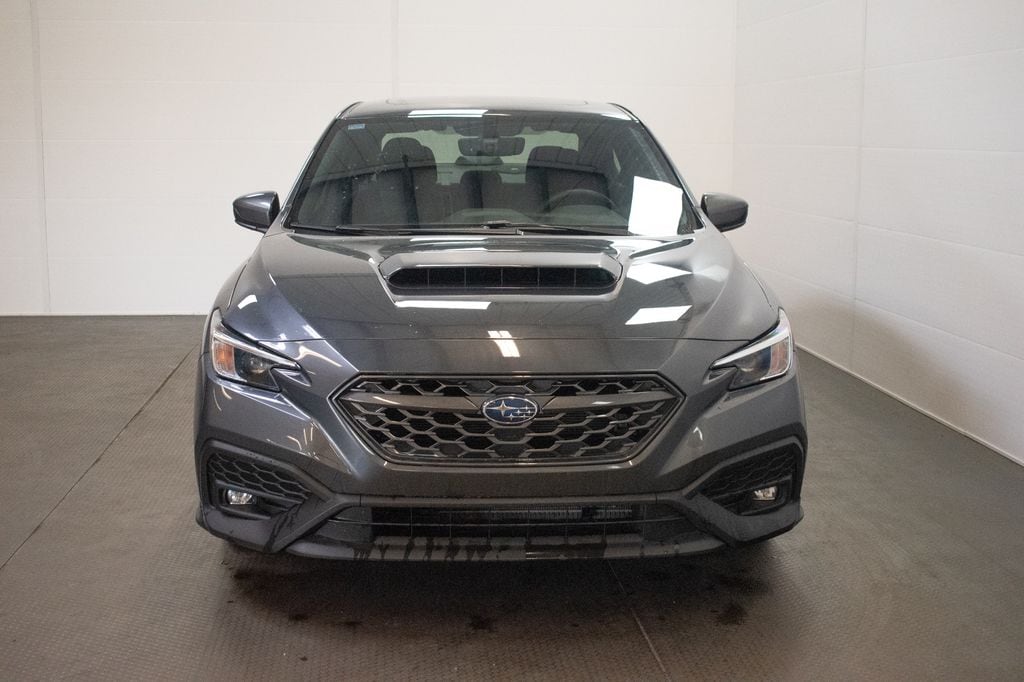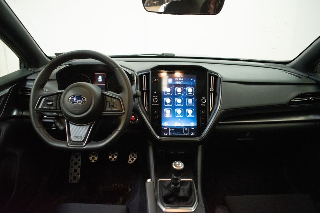 This WRX is well equipped with harman kardon & Moonroof (harman/kardon Speaker System and Power Tilt Up Moonroof), 4-Wheel Disc Brakes, 6 Speakers, ABS brakes, Air Conditioning, All-Weather Floor Liners, Alloy wheels, AM/FM radio: SiriusXM, Auto High-beam Headlights, Auto-Dimming Mirror w/Compass & HomeLink, Auto-dimming Rear-View mirror, Automatic temperature control, Brake assist, Bumpers: body-color, Cargo Net, Cargo Tray, Cloth Upholstery w/Red Stitching, Driver door bin, Driver vanity mirror, Dual front impact airbags, Dual front side impact airbags, Electronic Stability Control, Emergency communication system: STARLINK Safety and Security (Subscription Required), Exterior Parking Camera Rear, Four wheel independent suspension, Front anti-roll bar, Front Bucket Seats, Front Center Armrest, Front dual zone A/C, Front fog lights, Front reading lights, Fully automatic headlights, Heated door mirrors, Heated front seats, Illuminated entry, Knee airbag, Leather Shift Knob, Leather steering wheel, Low tire pressure warning, Occupant sensing airbag, Outside temperature display, Overhead airbag, Overhead console, Panic alarm, Passenger door bin, Passenger vanity mirror, Performance Design Heated Front Bucket Seats, Power door mirrors, Power steering, Power windows, Radio data system, Radio: Subaru STARLINK 11.6" Multimedia Plus Sys, Rear anti-roll bar, Rear seat center armrest, Rear Seatback Protector, Rear window defroster, Remote keyless entry, Security system, Speed control, Speed-sensing steering, Split folding rear seat, Spoiler, Sport steering wheel, STARLINK/Apple CarPlay/Android Auto, Steering wheel mounted audio controls, Tachometer, Telescoping steering wheel, Tilt steering wheel, Traction control, Trip computer, Variably intermittent wipers, Vortex Generator, and Wheels: 18" x 8.5" Dark Gray Finish Alum Alloy.