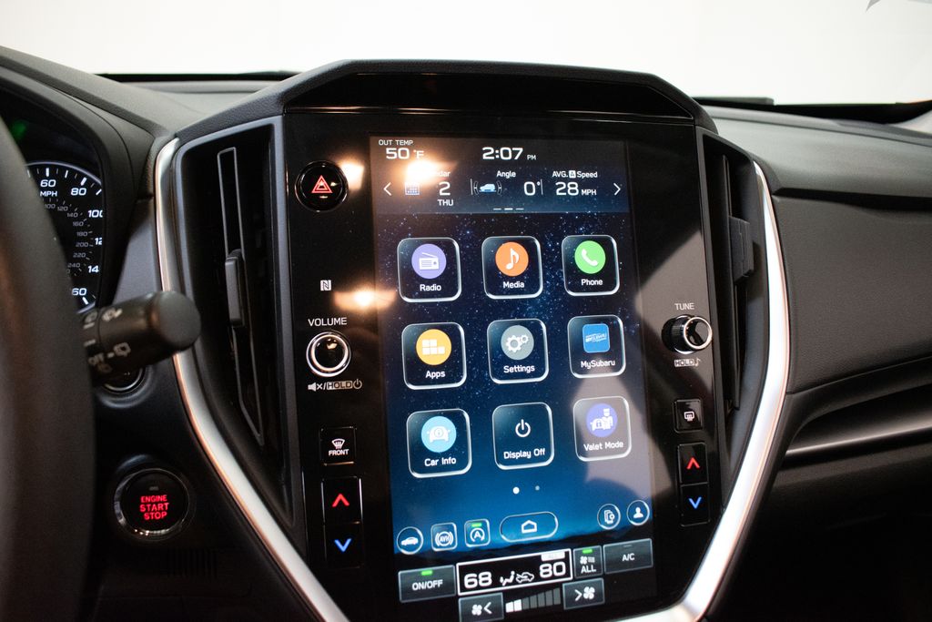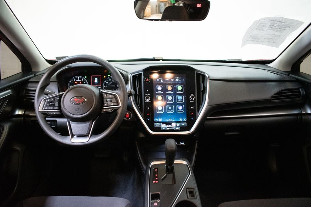 This Impreza is well equipped with Popular Package #1 (All-Weather Floor Liners, Auto-Dimming Exterior Mirror w/Approach Light, Auto-Dimming Mirror w/Compass & HomeLink, Cargo Tray, and Rear Bumper Applique), Standard Model, 4-Wheel Disc Brakes, 6 Speakers, ABS brakes, Air Conditioning, Alloy wheels, AM/FM radio: SiriusXM, Anti-whiplash front head restraints, Auto High-beam Headlights, Automatic temperature control, Brake assist, Bumpers: body-color, Driver door bin, Driver vanity mirror, Dual front impact airbags, Dual front side impact airbags, Electronic Stability Control, Emergency communication system: STARLINK Safety and Security (Subscription Required), Exterior Parking Camera Rear, Four wheel independent suspension, Front anti-roll bar, Front Bucket Seats, Front Center Armrest, Front dual zone A/C, Front fog lights, Front reading lights, Fully automatic headlights, Illuminated entry, Knee airbag, Low tire pressure warning, Occupant sensing airbag, Outside temperature display, Overhead airbag, Overhead console, Panic alarm, Passenger door bin, Passenger vanity mirror, Power door mirrors, Power steering, Power windows, Radio data system, Radio: Subaru STARLINK 11.6" Multimedia Plus Sys, Rear anti-roll bar, Rear seat center armrest, Rear window defroster, Rear window wiper, Remote keyless entry, Security system, Speed control, Speed-sensing steering, Split folding rear seat, Spoiler, Sport Cloth Upholstery, STARLINK/Apple CarPlay/Android Auto, Steering wheel mounted audio controls, Tachometer, Telescoping steering wheel, Tilt steering wheel, Traction control, Trip computer, Turn signal indicator mirrors, Variably intermittent wipers, and Wheels: 18" x 7.0" Machine Finish J Aluminum-Alloy.