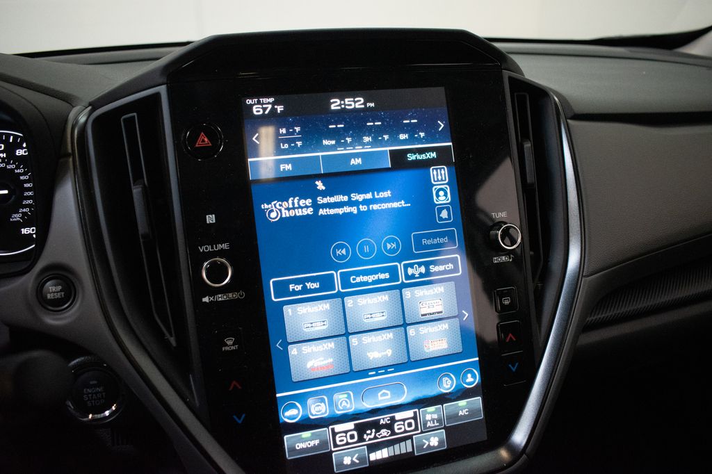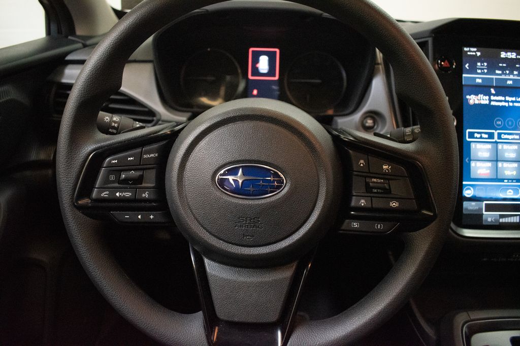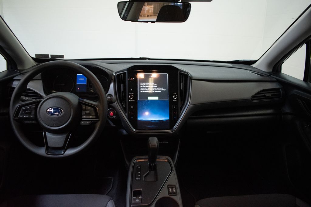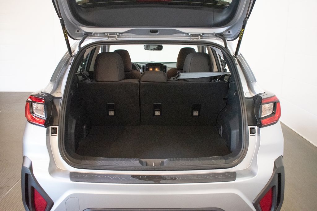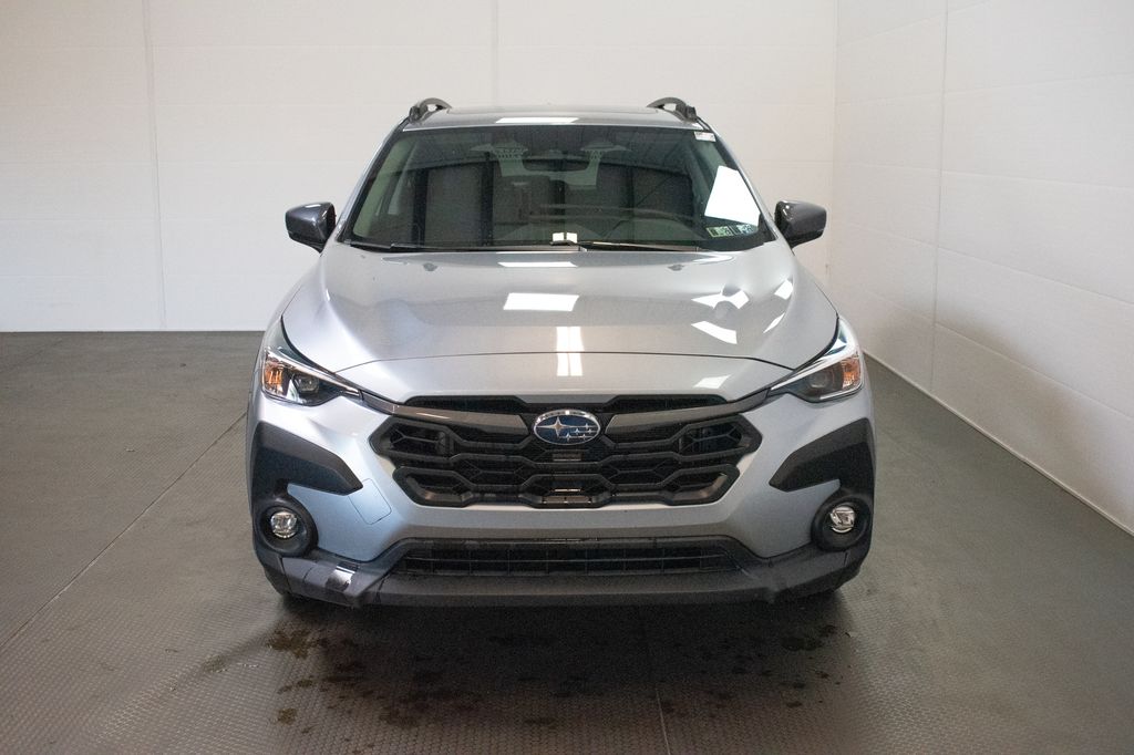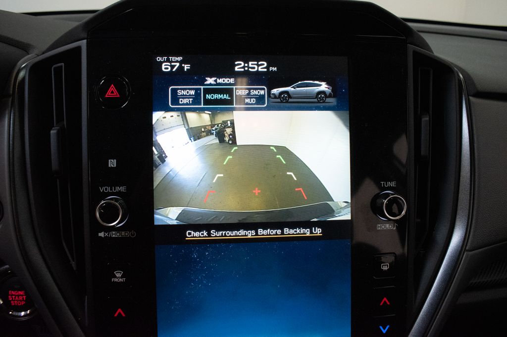 This Crosstrek is well equipped with All-Weather Package (Dual-Mode Heated Front Seats, Heated Power Exterior Mirrors, and Windshield De-Icer Wipers), BSD/RCTA and All Weather Package and Power Driver Seat and Power Moonroof (10-Way Power Driver's Seat, Blind Spot Detection (BSD), Power Moonroof, and Rear Cross-Traffic Alert (RCTA) System), Convenience Package #2 (Auto-Dimming Mirror with Compass and HomeLink, Rear Bumper Cover, and Splash Guards), 4-Wheel Disc Brakes, 6 Speakers, ABS brakes, Air Conditioning, Alloy wheels, AM/FM radio: SiriusXM with 360L, Anti-whiplash front head restraints, Auto High-beam Headlights, Auto-Dimming Exterior Mirror with Approach Light, Automatic temperature control, Brake assist, Bumpers: body-color, Cloth Upholstery, Driver door bin, Driver vanity mirror, Dual front impact airbags, Dual front side impact airbags, Electronic Stability Control, Emergency communication system: MySubaru Companion (5-years free), Exterior Parking Camera Rear, Four wheel independent suspension, Front anti-roll bar, Front Bucket Seats, Front Center Armrest, Front dual zone A/C, Front fog lights, Front reading lights, Fully automatic headlights, Illuminated entry, Knee airbag, Low tire pressure warning, Occupant sensing airbag, Outside temperature display, Overhead airbag, Overhead console, Panic alarm, Passenger door bin, Passenger vanity mirror, Power door mirrors, Power steering, Power windows, Radio data system, Radio: Subaru 11.6" Multimedia Plus System, Rear anti-roll bar, Rear seat center armrest, Rear side impact airbag, Rear window defroster, Rear window wiper, Remote keyless entry, Security system, Speed control, Speed-sensing steering, Split folding rear seat, Spoiler, Steering wheel mounted audio controls, Tachometer, Telescoping steering wheel, Tilt steering wheel, Traction control, Trip computer, Turn signal indicator mirrors, Variably intermittent wipers, and Wheels: 17" x 7.0" J Machine Finish Aluminum-Alloy.