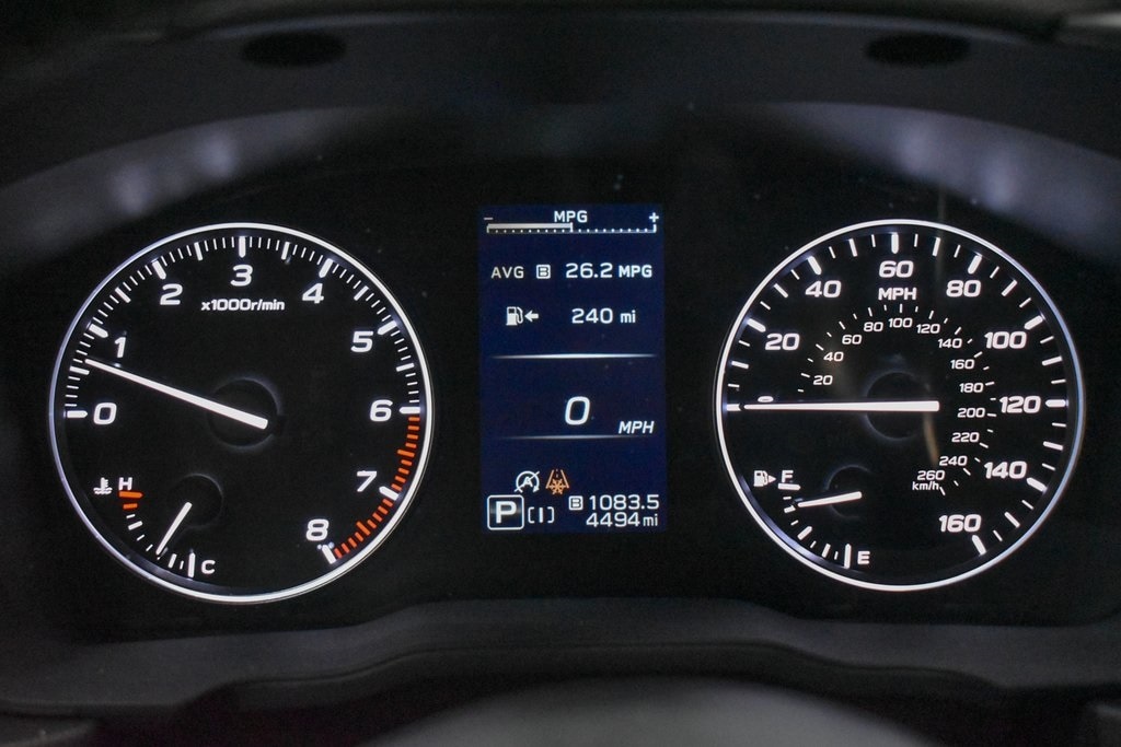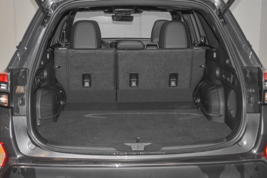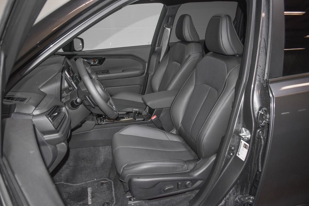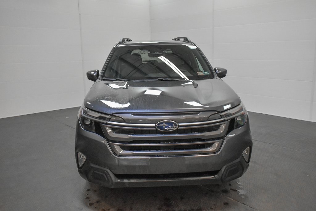 This Forester is well equipped with Harman/Kardon Speaker System and Navigation and Reverse Automatic Braking (Radio: Subaru 11.6" Multimedia Navigation System and Reverse Automatic Braking (RAB) System), 4-Wheel Disc Brakes, 6 Speakers, ABS brakes, Air Conditioning, Alloy wheels, AM/FM radio: SiriusXM with 360L, Anti-whiplash front head restraints, Auto High-beam Headlights, Auto-Dimming Exterior Mirror with Approach Light, Auto-Dimming Mirror with Compass and HomeLink, Automatic temperature control, Brake assist, Bumpers: body-color, Cargo Sidewall Protector, Driver door bin, Driver vanity mirror, Dual front impact airbags, Dual front side impact airbags, Electronic Stability Control, Emergency communication system: MySubaru Companion (5-years free), Exterior Parking Camera Rear, Four wheel independent suspension, Front anti-roll bar, Front Bucket Seats, Front Center Armrest, Front dual zone A/C, Front fog lights, Front reading lights, Fully automatic headlights, Heated door mirrors, Heated Front Bucket Seats, Heated front seats, Heated steering wheel, Illuminated entry, Knee airbag, Leather steering wheel, Low tire pressure warning, Occupant sensing airbag, Outside temperature display, Overhead airbag, Overhead console, Panic alarm, Passenger door bin, Passenger vanity mirror, Perforated Leather-Trimmed Upholstery, Power door mirrors, Power driver seat, Power Liftgate, Power moonroof: Panoramic, Power passenger seat, Power steering, Power windows, Radio data system, Radio: Subaru 11.6" Multimedia Plus System, Rain sensing wipers, Rear anti-roll bar, Rear Bumper Cover, Rear seat center armrest, Rear window defroster, Rear window wiper, Remote keyless entry, Security system, Speed control, Speed-sensing steering, Split folding rear seat, Spoiler, Steering wheel mounted audio controls, Tachometer, Telescoping steering wheel, Tilt steering wheel, Traction control, Trip computer, Turn signal indicator mirrors, Variably intermittent wipers, and Wheels: 18" x 7.0 J Dark Metallic Aluminum-Alloy.