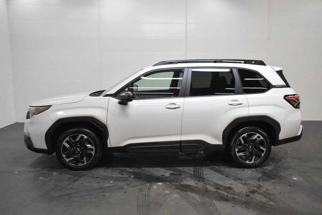 This Forester is well equipped with Harman/Kardon Speaker System and Navigation and Reverse Automatic Braking (Radio: Subaru 11.6" Multimedia Navigation System and Reverse Automatic Braking (RAB) System), 4-Wheel Disc Brakes, 6 Speakers, ABS brakes, Air Conditioning, Alloy wheels, AM/FM radio: SiriusXM with 360L, Anti-whiplash front head restraints, Auto High-beam Headlights, Auto-Dimming Mirror with Compass and HomeLink, Automatic temperature control, Brake assist, Bumpers: body-color, Cargo Net, Cargo Sidewall Protector, Driver door bin, Driver vanity mirror, Dual front impact airbags, Dual front side impact airbags, Electronic Stability Control, Emergency communication system: MySubaru Companion (5-years free), Exterior Parking Camera Rear, Four wheel independent suspension, Front anti-roll bar, Front Bucket Seats, Front Center Armrest, Front dual zone A/C, Front fog lights, Front reading lights, Fully automatic headlights, Heated door mirrors, Heated Front Bucket Seats, Heated front seats, Heated steering wheel, Illuminated entry, Knee airbag, Leather steering wheel, LED Upgrade, Low tire pressure warning, Occupant sensing airbag, Outside temperature display, Overhead airbag, Overhead console, Panic alarm, Passenger door bin, Passenger vanity mirror, Perforated Leather-Trimmed Upholstery, Power door mirrors, Power driver seat, Power Liftgate, Power moonroof: Panoramic, Power passenger seat, Power steering, Power windows, Radio data system, Radio: Subaru 11.6" Multimedia Plus System, Rain sensing wipers, Rear anti-roll bar, Rear Bumper Cover, Rear seat center armrest, Rear window defroster, Rear window wiper, Remote keyless entry, Security system, Speed control, Speed-sensing steering, Split folding rear seat, Spoiler, Steering wheel mounted audio controls, Tachometer, Telescoping steering wheel, Tilt steering wheel, Traction control, Trip computer, Turn signal indicator mirrors, Variably intermittent wipers, and Wheels: 18" x 7.0 J Dark Metallic Aluminum-Alloy.