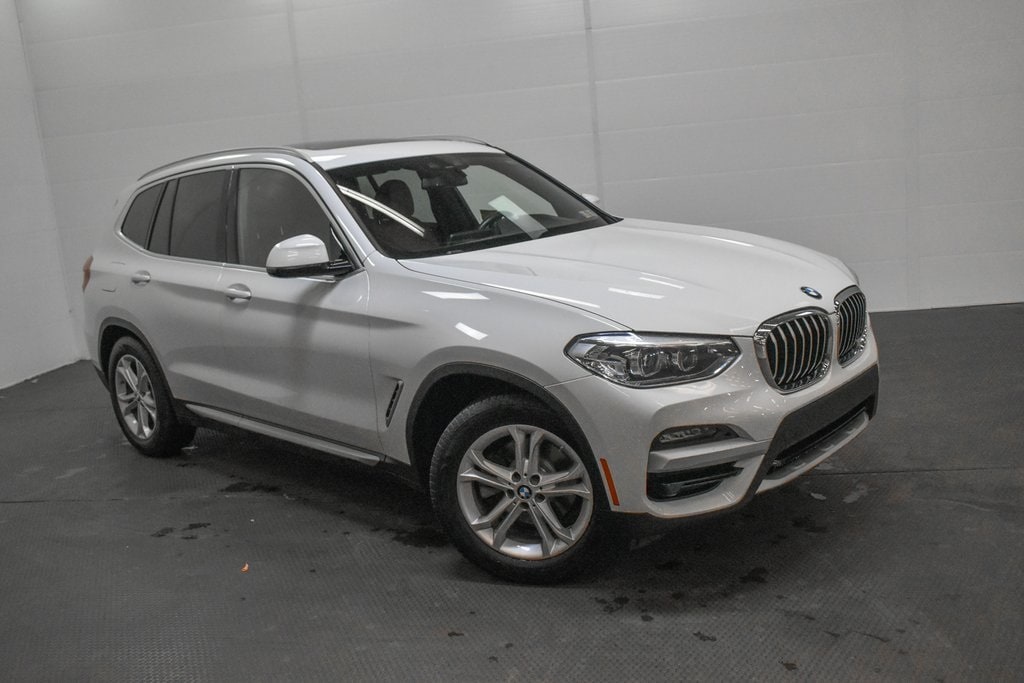 This X3 is well equipped with Connected Package Plus, Convenience Package (Lumbar Support and Panoramic Moonroof), 12 Speakers, 3.385 Axle Ratio, 4-Wheel Disc Brakes, ABS brakes, Air Conditioning, Alloy wheels, AM/FM radio: SiriusXM, Ambient Lighting, Apple CarPlay Compatibility, Auto-dimming door mirrors, Auto-dimming Rear-View mirror, Automatic temperature control, BMW Assist eCall, BMW TeleServices, Brake assist, Bumpers: body-color, Comfort Access Keyless Entry, ConnectedDrive Services, Delay-off headlights, Driver door bin, Driver vanity mirror, Dual front impact airbags, Dual front side impact airbags, Electronic Stability Control, Emergency communication system: BMW Assist eCall, Exterior Parking Camera Rear, Four wheel independent suspension, Front anti-roll bar, Front Bucket Seats, Front Center Armrest, Front dual zone A/C, Front fog lights, Front reading lights, Fully automatic headlights, Garage door transmitter, Genuine wood dashboard insert, Genuine wood door panel insert, Heated door mirrors, Heated Front Seats, Heated Steering Wheel, Hi-Fi Sound System, Illuminated entry, Knee airbag, Low tire pressure warning, Memory seat, Navigation, Navigation System, Occupant sensing airbag, Outside temperature display, Overhead airbag, Panic alarm, Passenger door bin, Passenger vanity mirror, Power door mirrors, Power driver seat, Power Front Seats, Power Liftgate, Power passenger seat, Power steering, Power windows, Radio Control US, Radio data system, Radio: AM/FM Stereo w/HD, Rain sensing wipers, Rear air conditioning, Rear anti-roll bar, Rear reading lights, Rear seat center armrest, Rear window defroster, Rear window wiper, Remote keyless entry, Roof rack: rails only, Security system, SensaTec Upholstery, SiriusXM Satellite Radio, Speed control, Speed-sensing steering, Speed-Sensitive Wipers, Split folding rear seat, Spoiler, Sport Bucket Seats, Sport steering wheel, Steering wheel mounted audio controls, Tachometer, Telescoping steering wheel, Tilt steering wheel, Traction control, Trip computer, Turn signal indicator mirrors, Variably intermittent wipers, Wheels: 18" x 7.0" Y-Spoke (Style 688), and WiFi Hotspot.