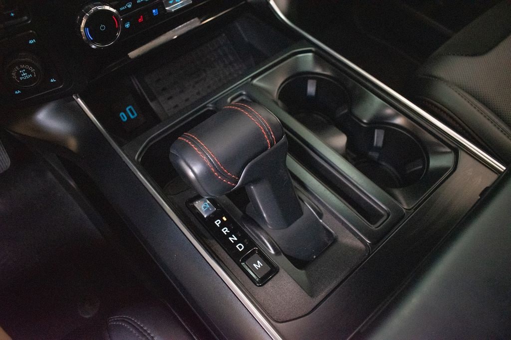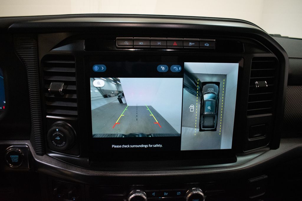 This F-150 is well equipped with Equipment Group 801A Standard, 14 Speakers, 17" Cast Aluminum Wheels, 4-Wheel Disc Brakes, ABS brakes, Adaptive suspension, Adjustable pedals, Air Conditioning, Alloy wheels, AM/FM radio: SiriusXM with 360L, Auto High-beam Headlights, Auto tilt-away steering wheel, Auto-dimming door mirrors, Auto-dimming Rear-View mirror, Automatic temperature control, Brake assist, Bumpers: body-color, Compass, Delay-off headlights, Driver door bin, Driver vanity mirror, Dual front impact airbags, Dual front side impact airbags, Electronic Locking w/4.10 Axle Ratio, Electronic Stability Control, Emergency communication system: SYNC 4 911 Assist, Front anti-roll bar, Front Bucket Seats, Front Center Armrest, Front dual zone A/C, Front fog lights, Front reading lights, Front wheel independent suspension, Fully automatic headlights, Garage door transmitter, Heads-Up Display, Heated door mirrors, Heated front seats, Heated rear seats, Heated steering wheel, Illuminated entry, Lane Departure Warning System, Leather Trim Seats, Low tire pressure warning, Memory seat, Navigation system: Connected Navigation, Occupant sensing airbag, Outside temperature display, Overhead airbag, Overhead console, Panic alarm, Passenger door bin, Passenger vanity mirror, Pedal memory, Power door mirrors, Power driver seat, Power passenger seat, Power steering, Power windows, Radio data system, Radio: B&O Unleashed Sound System by Bang & Olufsen, Rain sensing wipers, Rear reading lights, Rear step bumper, Rear window defroster, Remote keyless entry, Security system, Speed control, Speed-sensing steering, Split folding rear seat, Steering wheel memory, Steering wheel mounted audio controls, SYNC 4 w/Enhanced Voice Recognition, Tachometer, Telescoping steering wheel, Tilt steering wheel, Traction control, Trip computer, Turn signal indicator mirrors, Variably intermittent wipers, and Ventilated front seats.