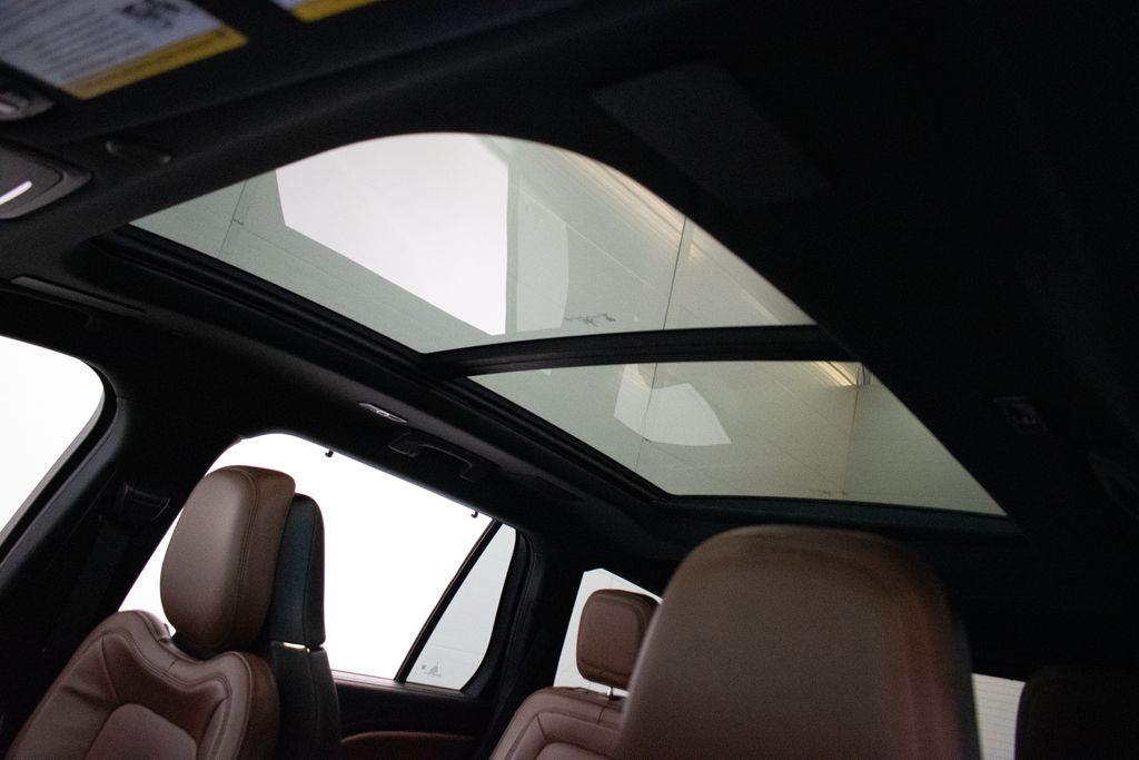 This Lincoln Aviator is well equipped with Dynamic Handling Package (Adaptive Suspension w/Road Preview and Air Glide Suspension w/Dynamic Lower Entry), Elements Package Plus (Auto Air Refresh, Auto Heated/Ventilated Driver & Passenger Seats, Heated Steering Wheel, Heated VisioBlade Wipers, and Heated/Ventilated 2nd Row Outboard Seats), Equipment Group 201A (Head-Up Display and Phone As A Key), Illumination Package (Adaptive Pixel LED Headlamps, LED Fog Lamps, and Lincoln Lit Star in Grille), Lincoln Co-Pilot360 1.5 Plus (Active Park Assist 2.0, Evasive Steering Assist, Intelligent Adaptive Cruise Control, and Reverse Brake Assist), Luxury Package (30-Way Perfect Position Seats w/Active Motion, Radio: Revel Ultima 3D Audio System w/28 Speakers, and Rear Door Sunshades), Navigation System, 14 Speakers, 2nd Row Bench Seat, 3.58 Axle Ratio, 3rd row seats: split-bench, 4-Wheel Disc Brakes, ABS brakes, Adaptive suspension, Air Conditioning, All-Weather 1st & 2nd Row Floor Liners, Alloy wheels, AM/FM radio: SiriusXM, Audio memory, Auto High-beam Headlights, Auto-dimming door mirrors, Auto-dimming Rear-View mirror, Automatic temperature control, Brake assist, Bumpers: body-color, Cargo Area Protector (Dealer Installed), Compass, Delay-off headlights, Driver door bin, Driver vanity mirror, Dual front impact airbags, Dual front side impact airbags, Electronic Stability Control, Emergency communication system, Four wheel independent suspension, Front anti-roll bar, Front Bucket Seats, Front Center Armrest, Front dual zone A/C, Front reading lights, Fully automatic headlights, Garage door transmitter, Heated door mirrors, Heated front seats, HVAC memory, Illuminated entry, Knee airbag, Leather steering wheel, Low tire pressure warning, Memory seat, Occupant sensing airbag, Outside temperature display, Overhead airbag, Overhead console, Panic alarm, Passenger door bin, Passenger vanity mirror, Power door mirrors, Power driver seat, Power Liftgate, Power moonroof: Panoramic Vista Roof, Power passenger seat, Power steering, Power windows, Premium Lthr Heated/Ventilated Fnt Captain's Chairs, Radio data system, Radio: Revel AM/FM Audio System w/14 Speakers, Rain sensing wipers, Rear air conditioning, Rear anti-roll bar, Rear audio controls, Rear dual zone A/C, Rear reading lights, Rear window defroster, Rear window wiper, Remote keyless entry, Security system, SiriusXM Radio, Speed control, Speed-Sensitive Wipers, Split folding rear seat, Spoiler, Steering wheel memory, Steering wheel mounted A/C controls, Steering wheel mounted audio controls, SYNC 3 Communication & Entertainment System, Tachometer, Telescoping steering wheel, Tilt steering wheel, Traction control, Trip computer, Turn signal indicator mirrors, Variably intermittent wipers, and Wheels: 20" Bright-Machined Aluminum.