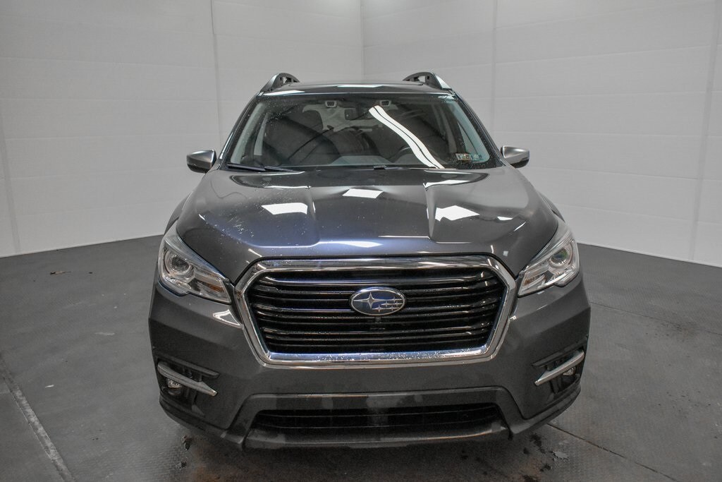 This Ascent is well equipped with Standard Model w/Slate Black Interior, 14 Speakers, 3rd row seats: bench, 4-Wheel Disc Brakes, ABS brakes, Air Conditioning, All-Weather Floor Liners, Alloy wheels, AM/FM radio: SiriusXM, Auto High-beam Headlights, Auto-dimming Rear-View mirror, Automatic temperature control, Axle Ratio: 4.44, Brake assist, Bumpers: body-color, Cargo Tray, CD player, Compass, Delay-off headlights, Driver door bin, Driver vanity mirror, Dual front impact airbags, Dual front side impact airbags, Electronic Stability Control, Emergency communication system: STARLINK Safety and Security (Subscription Required), Exterior Parking Camera Rear, Four wheel independent suspension, Front anti-roll bar, Front Bucket Seats, Front Center Armrest, Front dual zone A/C, Front fog lights, Front reading lights, Fully automatic headlights, Garage door transmitter: HomeLink, harman/kardon® Speakers, Heated & Ventilated Front Bucket Seats, Heated door mirrors, Heated front seats, Heated rear seats, Heated steering wheel, Illuminated entry, Knee airbag, Low tire pressure warning, Magnetite Gray Metallic Body Side Molding, Memory seat, Navigation System, Occupant sensing airbag, Outside temperature display, Overhead airbag, Overhead console, Panic alarm, Passenger door bin, Passenger vanity mirror, Perforated Leather-Trimmed Upholstery, Power door mirrors, Power driver seat, Power Liftgate, Power moonroof, Power passenger seat, Power steering, Power windows, Radio data system, Radio: Subaru STARLINK 8.0" Multimedia Nav System, Rain sensing wipers, Rear air conditioning, Rear anti-roll bar, Rear Bumper Cover, Rear reading lights, Rear window defroster, Rear window wiper, Reclining 3rd row seat, Remote keyless entry, Security system, Speed control, Splash Guards, Split folding rear seat, Spoiler, STARLINK/Apple CarPlay/Android Auto, Steering wheel mounted audio controls, Tachometer, Telescoping steering wheel, Tilt steering wheel, Traction control, Trip computer, Turn signal indicator mirrors, Variably intermittent wipers, Ventilated front seats, and Wheels: 20" x 7.5 J Dk Gray Alloy w/Machine Finish.