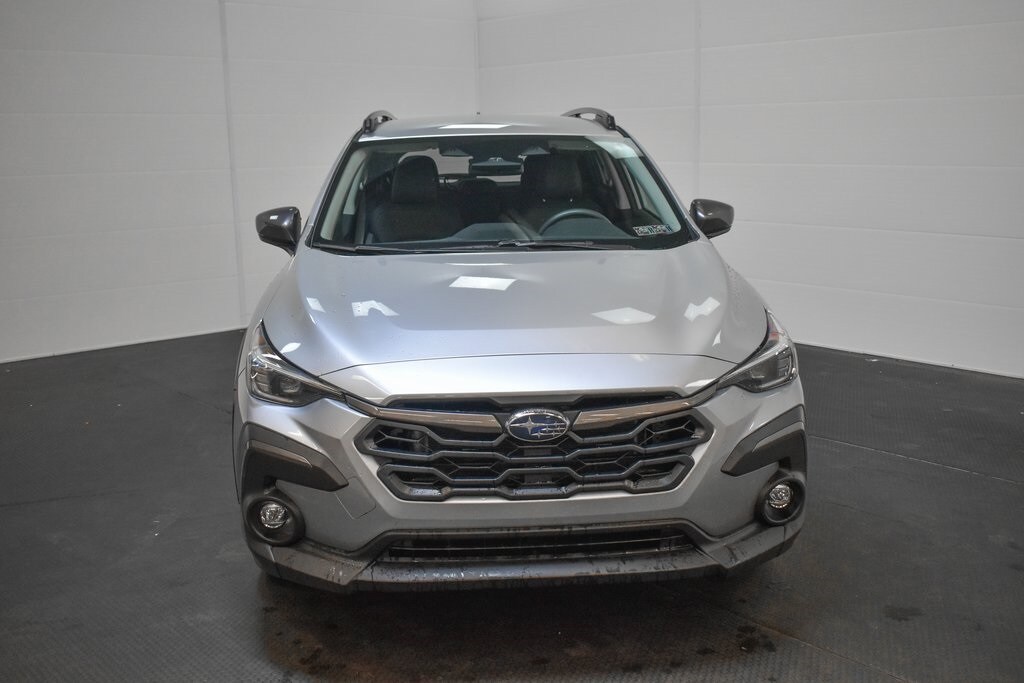 This Crosstrek is well equipped with Standard Model, 3.70 Axle Ratio, 4-Wheel Disc Brakes, 6 Speakers, ABS brakes, Air Conditioning, All-Weather Floor Liners, Alloy wheels, AM/FM radio: SiriusXM, Anti-whiplash front head restraints, Auto High-beam Headlights, Automatic temperature control, Brake assist, Bumpers: body-color, Driver door bin, Driver vanity mirror, Dual front impact airbags, Dual front side impact airbags, Electronic Stability Control, Emergency communication system: STARLINK Safety and Security (Subscription Required), Exterior Parking Camera Rear, Four wheel independent suspension, Front anti-roll bar, Front Bucket Seats, Front Center Armrest, Front dual zone A/C, Front fog lights, Front reading lights, Fully automatic headlights, Heated door mirrors, Heated Front Bucket Seats, Heated front seats, Illuminated entry, Knee airbag, Leather Shift Knob, Leather-Trimmed Upholstery, LED Upgrade, Low tire pressure warning, Occupant sensing airbag, Outside temperature display, Overhead airbag, Overhead console, Panic alarm, Passenger door bin, Passenger vanity mirror, Power door mirrors, Power driver seat, Power steering, Power windows, Radio data system, Radio: Subaru STARLINK 11.6" Multimedia Plus Sys, Rear anti-roll bar, Rear seat center armrest, Rear Seatback Protector, Rear window defroster, Rear window wiper, Remote keyless entry, Security system, Speed control, Speed-sensing steering, Splash Guards, Split folding rear seat, Spoiler, STARLINK/Apple CarPlay/Android Auto, Steering wheel mounted audio controls, Tachometer, Telescoping steering wheel, Tilt steering wheel, Traction control, Trip computer, Turn signal indicator mirrors, Variably intermittent wipers, and Wheels: 18" x 7.0J Dark Gray Aluminum Alloy.