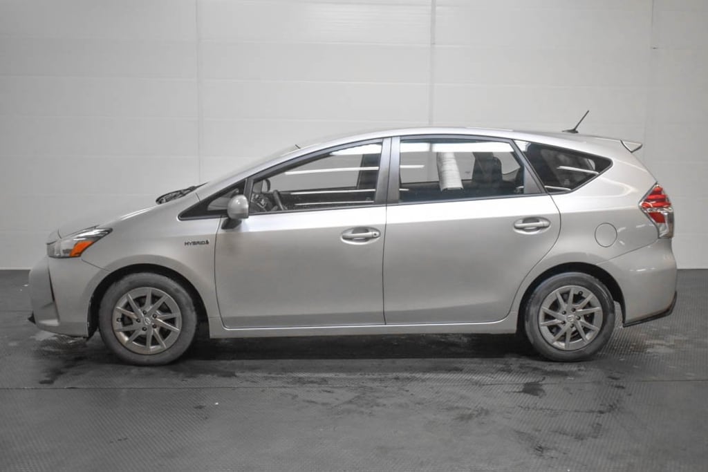 This Prius v is well equipped with ABS brakes, Alloy wheels, Electronic Stability Control, Heated door mirrors, Illuminated entry, Low tire pressure warning, Remote keyless entry, Traction control, 4-Wheel Disc Brakes, 6 Speakers, Air Conditioning, Anti-whiplash front head restraints, Automatic temperature control, Brake assist, Bumpers: body-color, CD player, Delay-off headlights, Driver door bin, Driver vanity mirror, Dual front impact airbags, Dual front side impact airbags, Exterior Parking Camera Rear, Front anti-roll bar, Front Bucket Seats, Front Center Armrest, Front reading lights, Front wheel independent suspension, Knee airbag, Occupant sensing airbag, Outside temperature display, Overhead airbag, Overhead console, Panic alarm, Passenger door bin, Passenger vanity mirror, Power door mirrors, Power steering, Power windows, Rear window defroster, Rear window wiper, Speed control, Split folding rear seat, Spoiler, Steering wheel mounted A/C controls, Steering wheel mounted audio controls, Telescoping steering wheel, Tilt steering wheel, Trip computer, and Variably intermittent wipers.